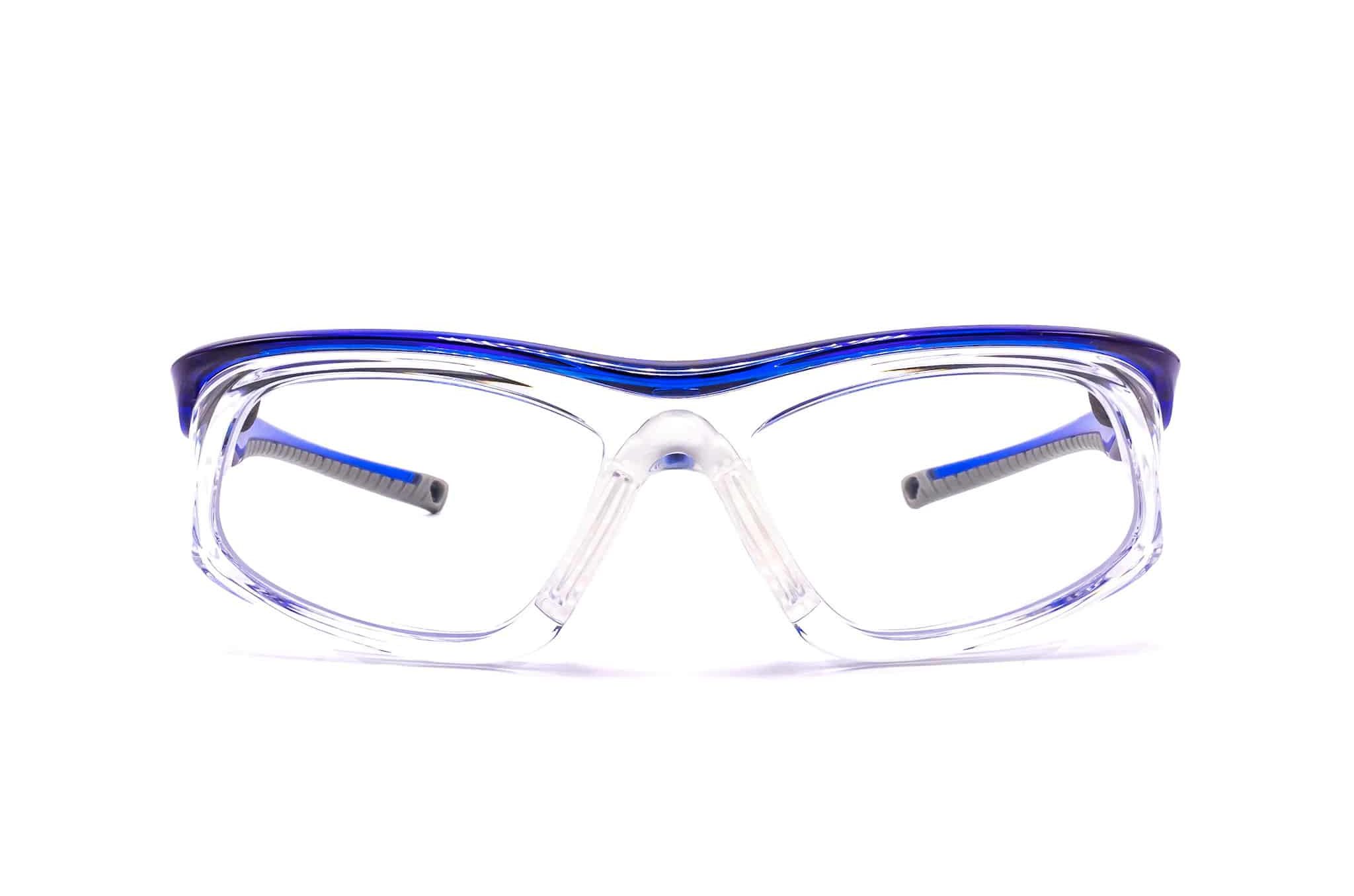 Made with lightweight plastic material and wrap-around frame design for snug fit. It is prescription ready for those in need of corrective lenses and has a blue/clear color for a stylish look.